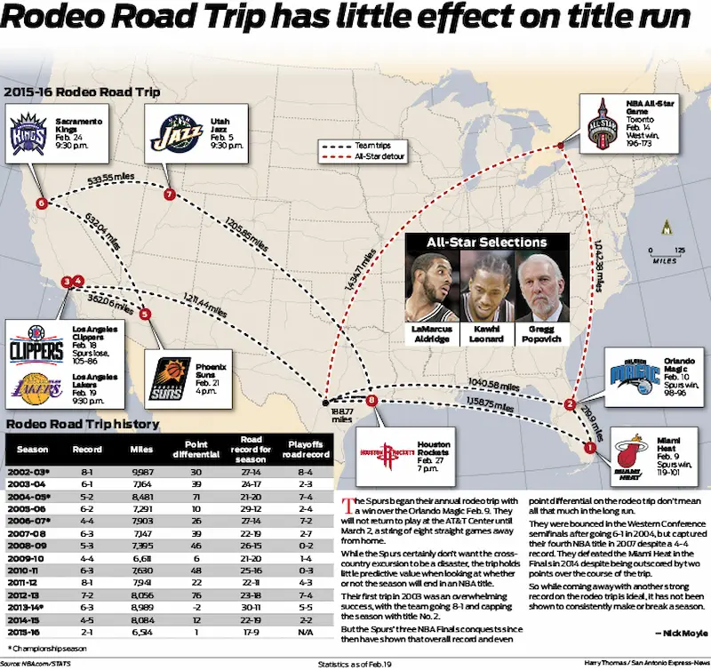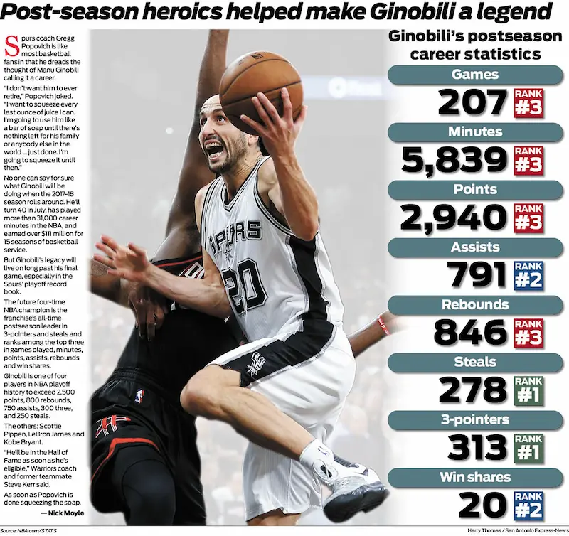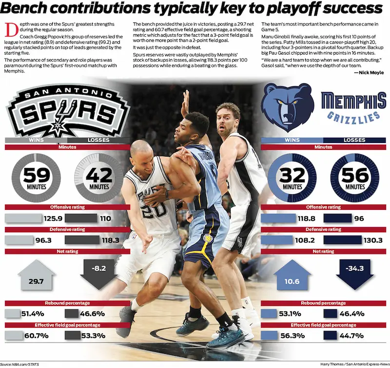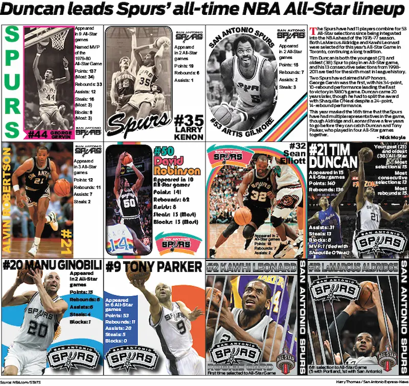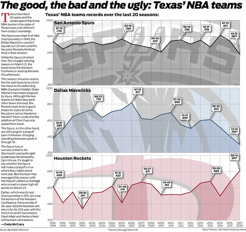 Magazine graphics created for the San Antonio Express-News “Spurs Nation” weekly magazine.